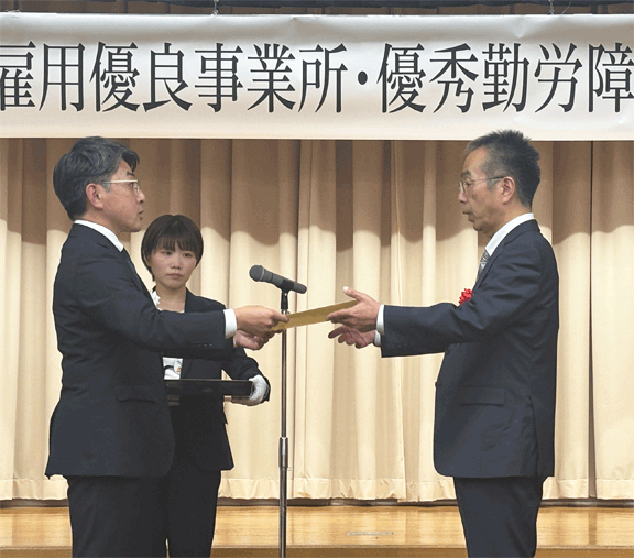 令和7年 障害者雇用優良事業所 理事長努力賞を受賞しました 2025年10月29日 障がい者の雇用の促進と職業の安定を図るため、 障がい者を積極的に雇用している事業所として当社が認められ、滋賀県庁にて行われた「独立行政法人高齢・障害者・求職者雇用支援機構」による表彰式にて「理事長努力貰」を受貰しました。 これからも多様な人たちが働きやすい職場環境の実現を目指します。 ページの先頭へ